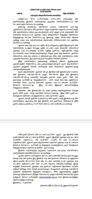 மேலும் ஊரடங்கு காரணமாக நான்குமாத மின்நுகர்வு இரண்டுமாத மின் நுகர்வாக பிரிக்கப்பட்டு கணக்கிடப்பட்டு உள்ளது.